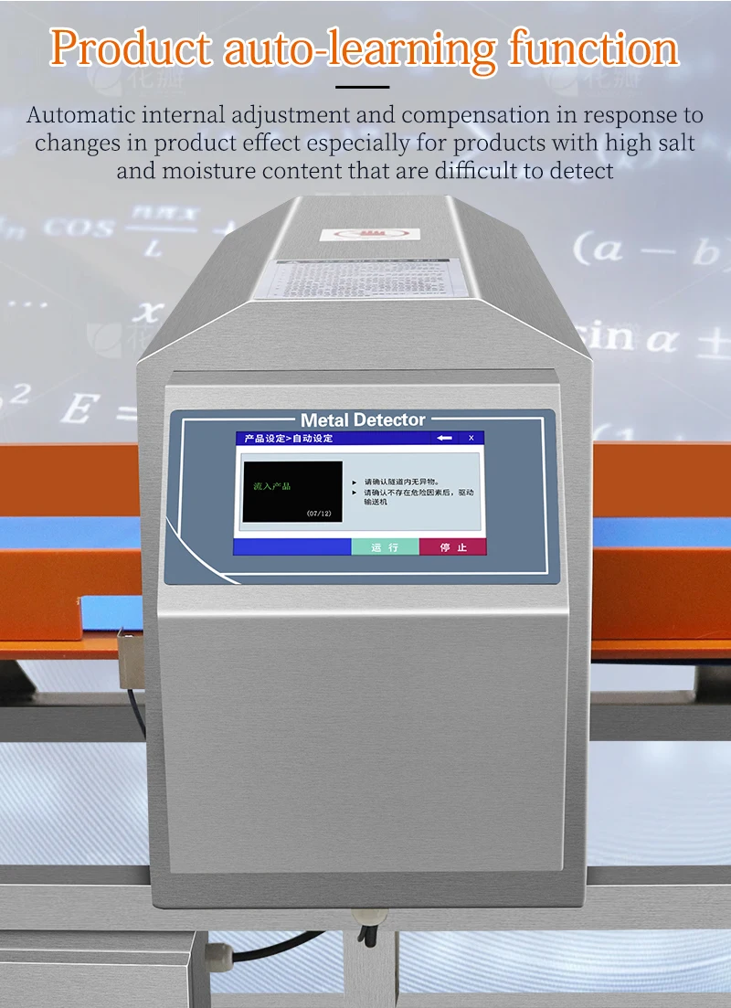 1.Belt-down reject Suitable for loose and thin products, seamless integrated to production line 2.Stable and high sensitivity & precision Mature phase adjustment technology, avoiding shortcomings like no phase of LC analog circuit, low stability, without products suppression function and machine aging caused by time and temperature 3.Auto-setting function Fast learn product character automatically and finish Auto-setting process. 4.New Function: -Phase tracking function with can maintain the stable high-sensitivity detection ability -Product tracking function, which can do adjustment and compensation according to the changes of the product effect automatically – Auto-balanced calibration function, which can ensure the service lifetime of the the machine 5.User friendly function Automatic rewind function, dispense with handling large product 100 products can be restored in database USB and Ethernet interfaces are available LCD, Chinese-English touch screen, easy operation International languages customized 6.Easy to be cleaned